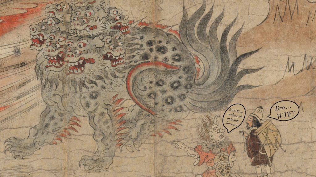 The ground beneath you feels as though it has turned to a gelatinous cube as the creature of eyes and, more importantly, mouths lurches forward like a drunken sailor. You stand at the ready, cock already bared to the musty cavern air, thinking of fucking first one mouth and then another and another. Would each mouth suck differently? Would the tongues trace the same pattern of your cock?