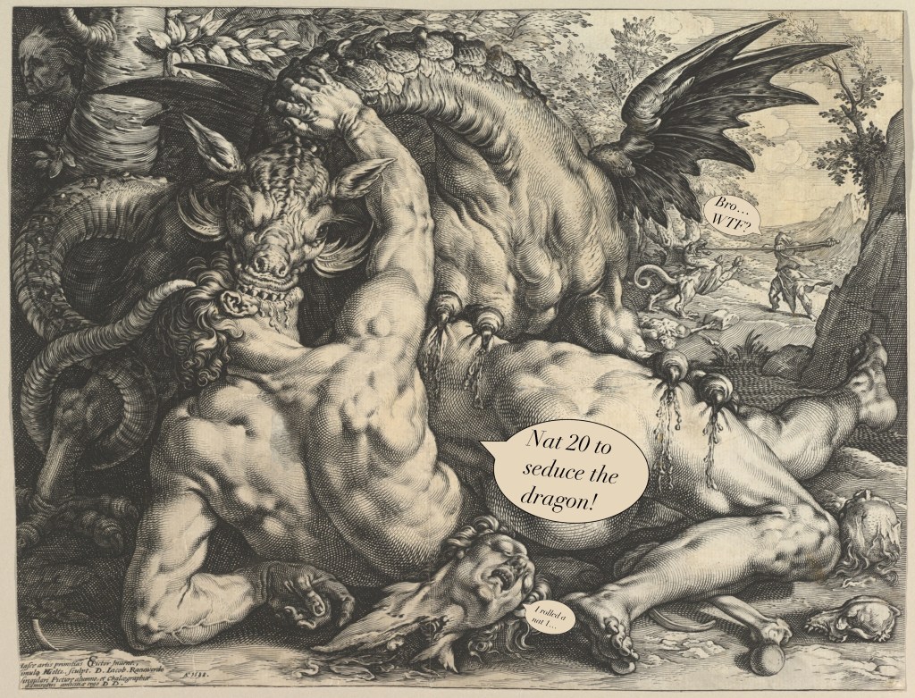 The Underdark can be quite an intimidating place if you’re not in the right frame of mind. Fortunately, you have quite the bank of sexual experiences to keep your mind occupied. You ruminate on rubbing up against that rakshasa before focusing on how it felt with the flomorian. Anything to keep your thoughts off of what dire creatures lurk just beyond your view.