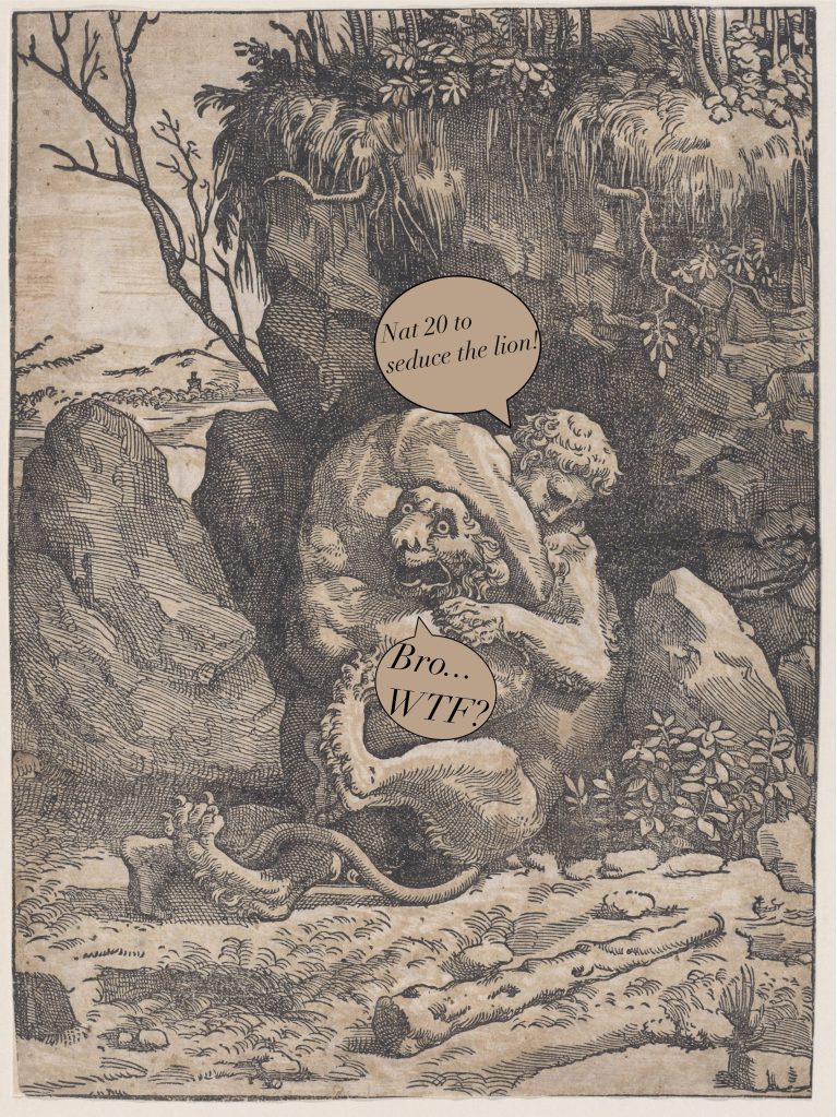 Hippogriffs are Large relative of the more popular griffon. Where the griffon has the body of a lion, the hippogriff has the hindquarters of a horse and the head and wings of an eagle. While they exhibit more complex emotions than the standard eagle, hippogriffs are not very intelligent creatures. Hippogriffs lay eggs and can be domesticated to the point that they are used as mounts for aerial battles. Unfortunately for our promiscuous and adventurous bards, but probably fortunately for hippogriffs, these creatures have a below 5 Intelligence so they are unable to give consent for cross-species relations.